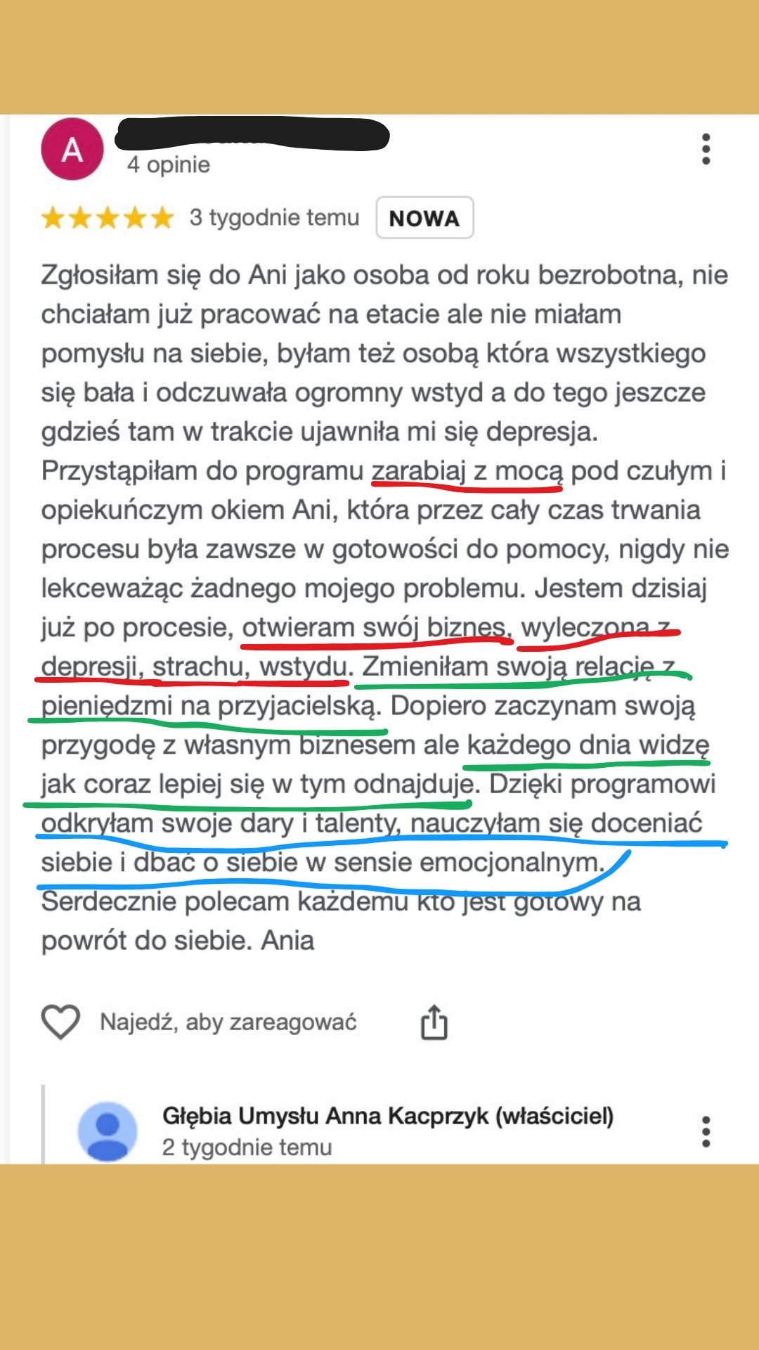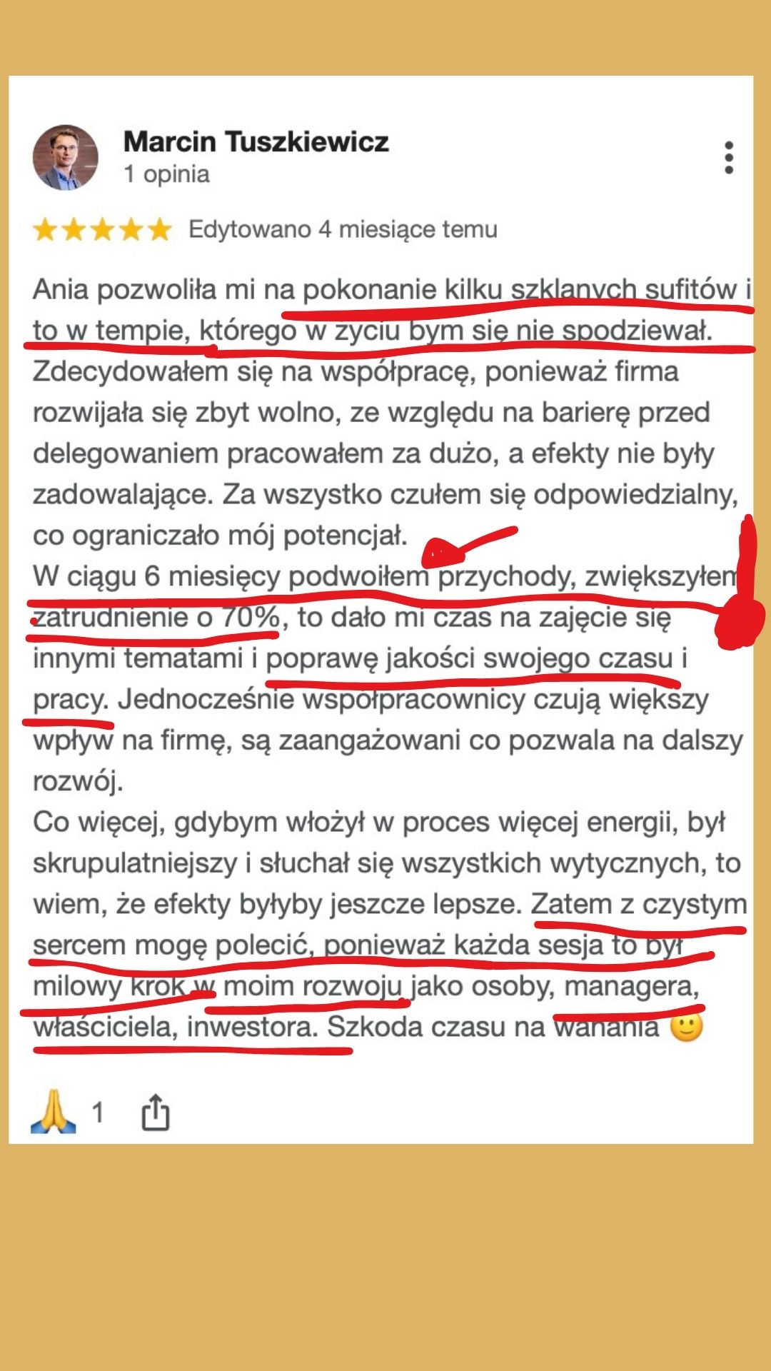 Rozmowa z Marzeną – Po wspólnej pracy ma 2x wzrost klientów premium, zarabia w dużo większej lekkości bez presji, zmieniła miejsce usług, a klienci są :) w 6 miesięcy