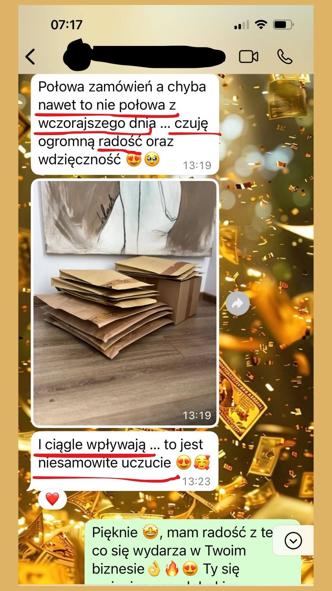 z mocą, mając odwagę i pewność w sobie… jak po 1 sesji rozwiązał się worek z zamówieniami od klientów.