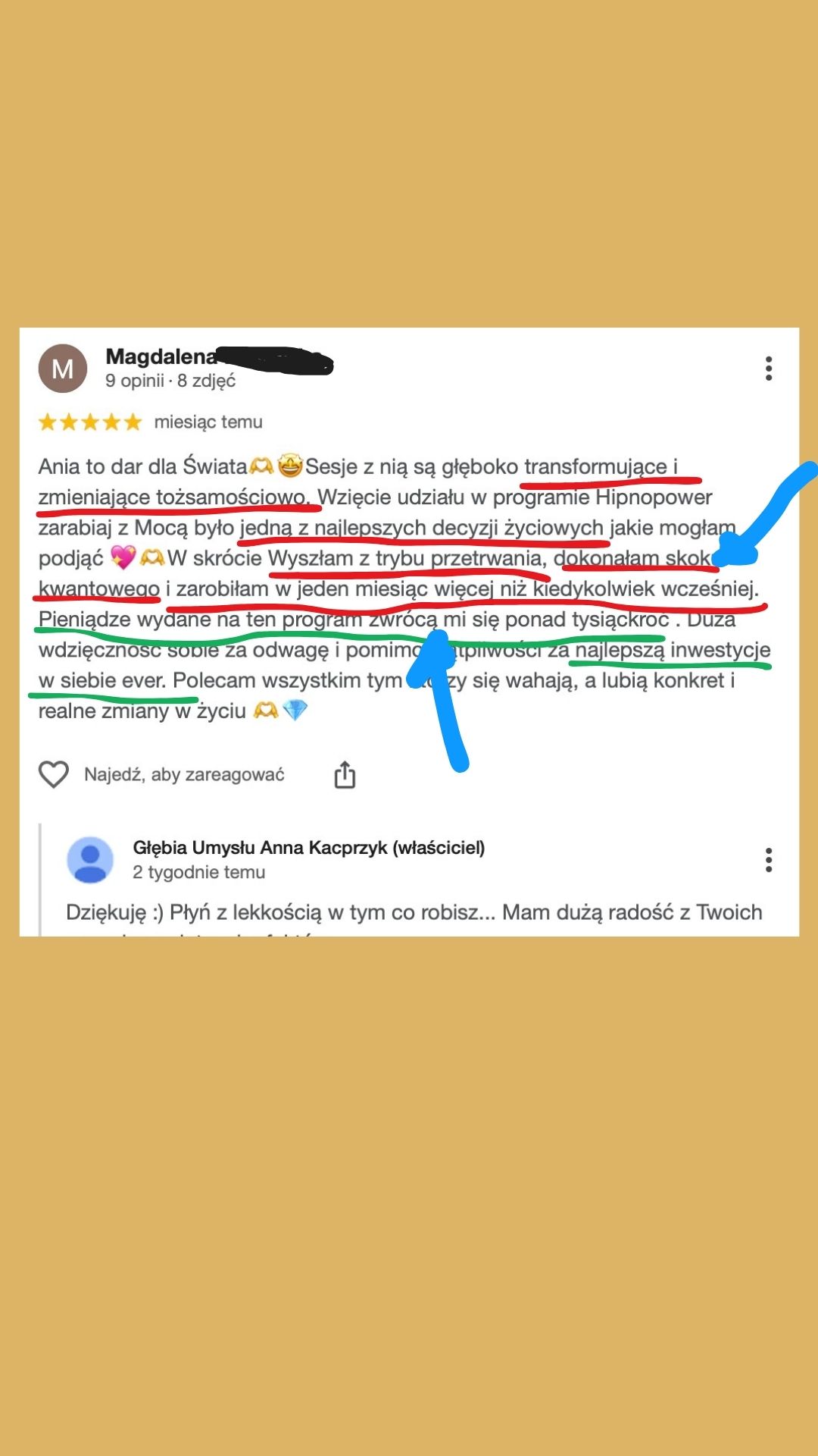 3X w 6 miesięcy, zarabiając z dużo większą mocą i radością, korzystając z mojej Autorskiej Metody HIPNOPOWER.